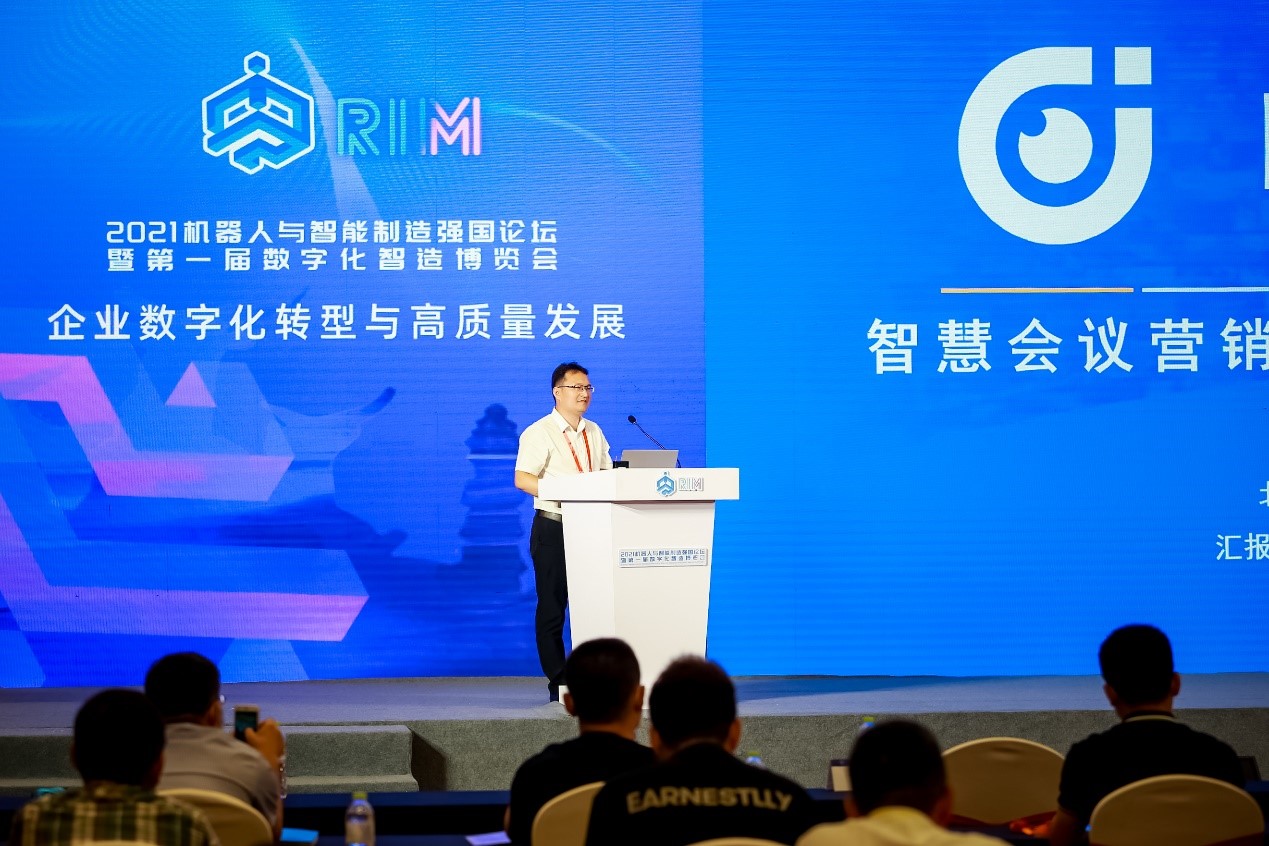 産業發展新格局”爲主題,旨在加快培育智能制造新動能,賦能新生态,構建新格局。映目創始人宋端磊受邀參加,並作出“智慧會議營銷及服務”主題演講,闡述智能機器人在直播領域中的新前景、新應用。同時,映目在第一屆數字化智造博覽會的場館内展出智能影像機器人解決方案。